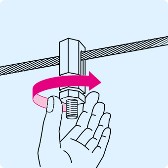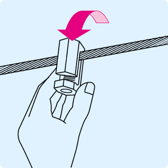 支持を取る際は、ボルトを軽く締めて仮止めをしたり、メッセンジャーワイヤにマイティーロックを引掛けながらスライドさせることで、支持間隔を任意の位置に容易に調整することができます。
